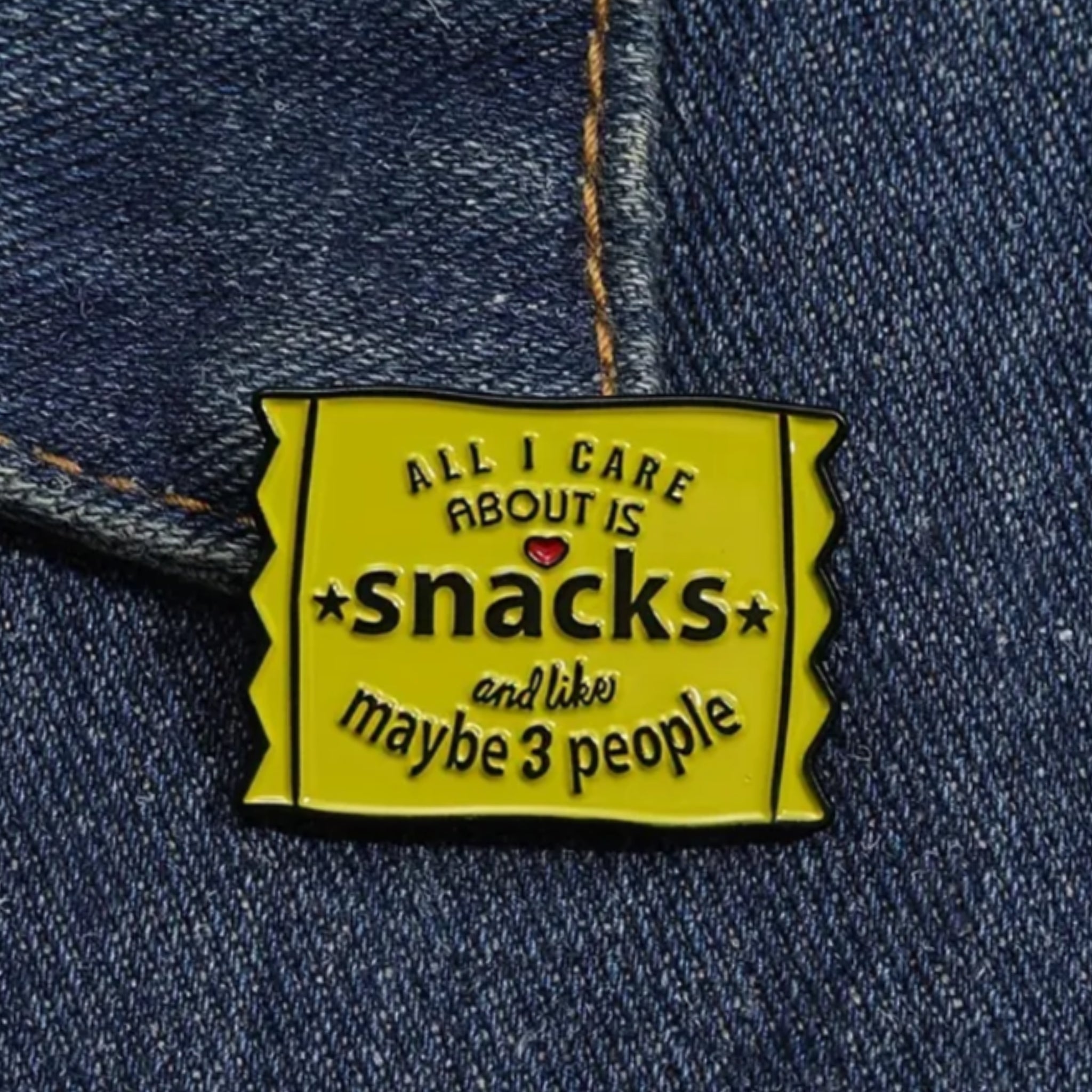 All I Care About is Snacks and Like Maybe 3 People Enamel Pin. 2.0 X 2.8