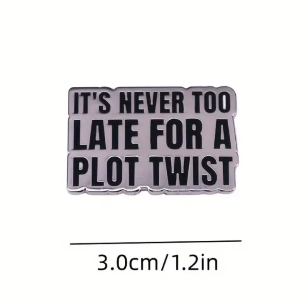 It's Never too Late for a Plot Twist Enamel Pin. 3.5 X 3.0
