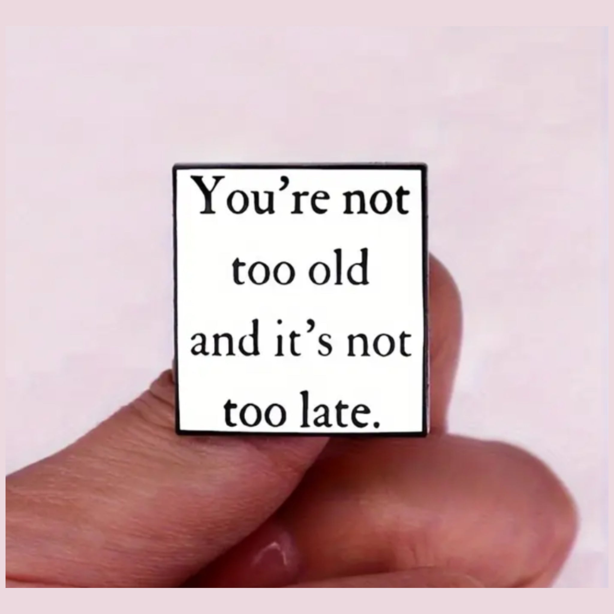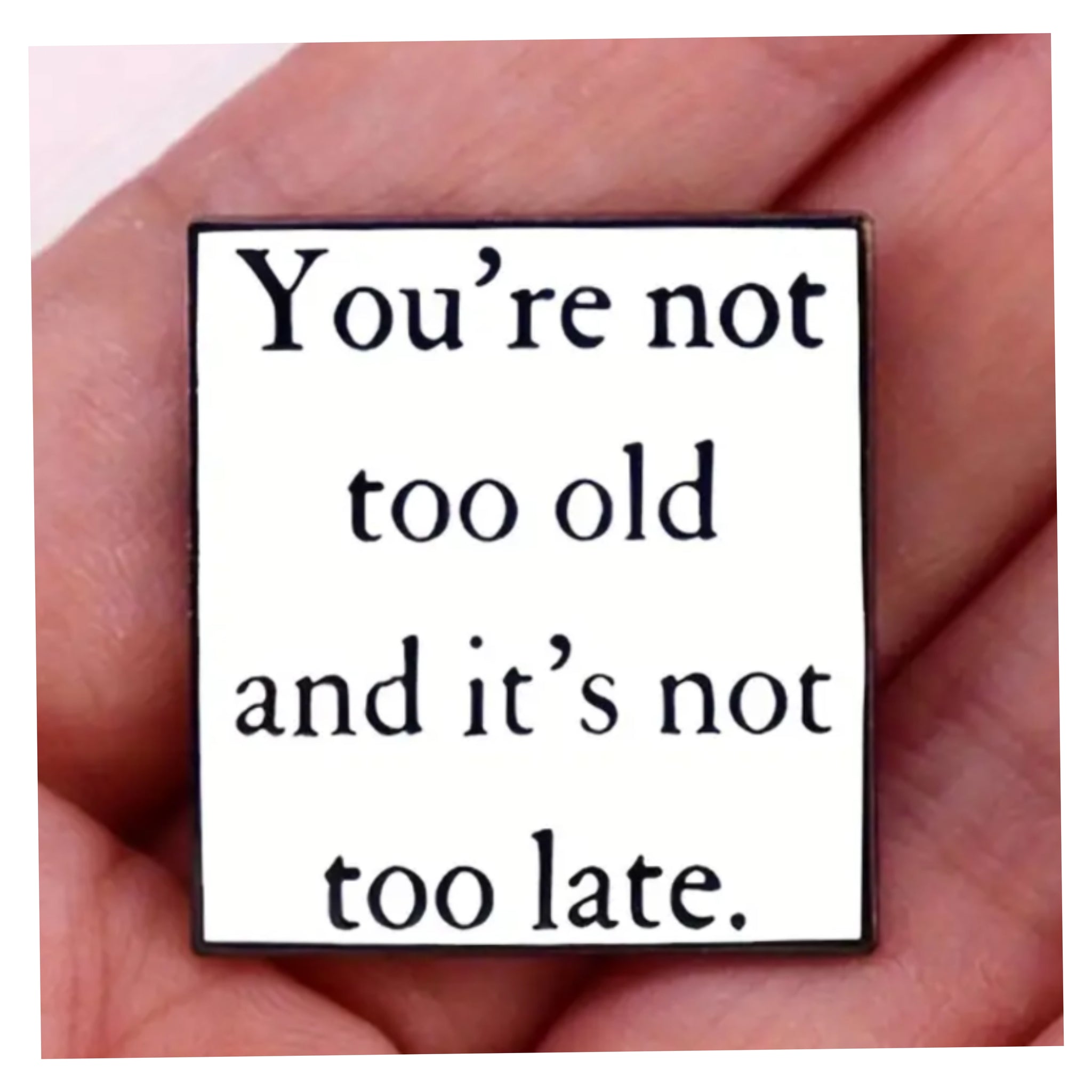 You're Not Too Old and It's Not Too Late Enamel Pin. 2.8 X 2.5