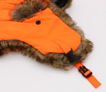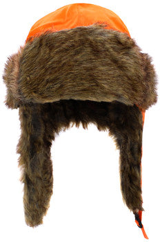 Neon Orange Trapper Hat. Plush faux fur lining. One size fits most.